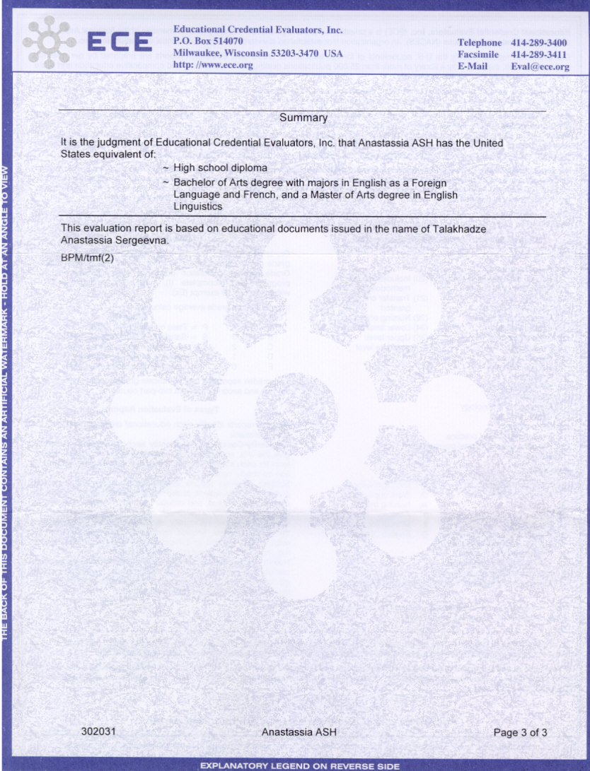 My University Diploma evaluated by Educational Credential Evaluators (ECE) - p 3